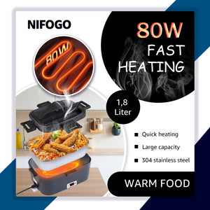 - 【80W High Power】The heated lunchbox for adults has a power of 80W, which can heat the food to the right temperature in a short time and the temperature error is between ±3℃, so that you can enjoy a warm lunch even if you are busy. (The bottom of the heating lunch box is not allowed to touch water)