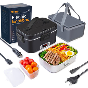 𝗩𝗼𝘆𝗮𝗴𝗲𝗿 Electric Lunch Box for Adults with Temperature Display 1800ml/80W Portable Heated Lunch Box for Men 3 in 1 110V/12V/24V-Upgrade Black
