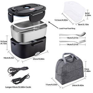 • ใ€๐Ÿญ.๐Ÿฑ ๐—Ÿ ๐—Ÿ๐—ฎ๐—ฟ๐—ด๐—ฒ ๐—–๐—ฎ๐—ฝ๐—ฎ๐—ฐ๐—ถ๐˜๐˜†ใ€‘Electric lunch box for adults has a large 1.5 liters capacity and comes with a 0.45 liter plastic box, you can use this lunch box to put different kinds of food separately and won't go hungry. The lid can hold spoons and forks, perfect for construction workers, office workers, car/truck drivers to carry while working.