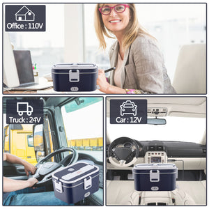 - ใ๐ญ๐ฎ๐ฉ/๐ฎ๐ฐ๐ฉ/๐ญ๐ญ๐ฌ๐ฉใThe 3-in-1 electric lunch box food heater provides 3 voltages (12V/24V/110V), supports 110V home/office and 12V / 24V car/truck use. No matter where you are, just plug it in and enjoy warm delicious food. Perfect for truckers who must be on the road for long periods of time, making your long-distance life better. Comes with an instruction manual.
