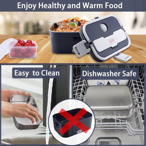 - ใ๐๐ฎ๐๐ ๐๐ผ ๐๐น๐ฒ๐ฎ๐ป ๐ฎ๐ป๐ฑ ๐๐ฎ๐ฟ๐ฟ๐ใHeated lunch boxes for adults comes with silicone strips and removable stainless steel container, easy to clean. The heat-resistant handle design makes the box easy to carry and is designed with four side snap closures around it for enhanced sealing. Note: Only the stainless steel liner and cutlery are dishwasher safe, the rest can be wiped with a rag.