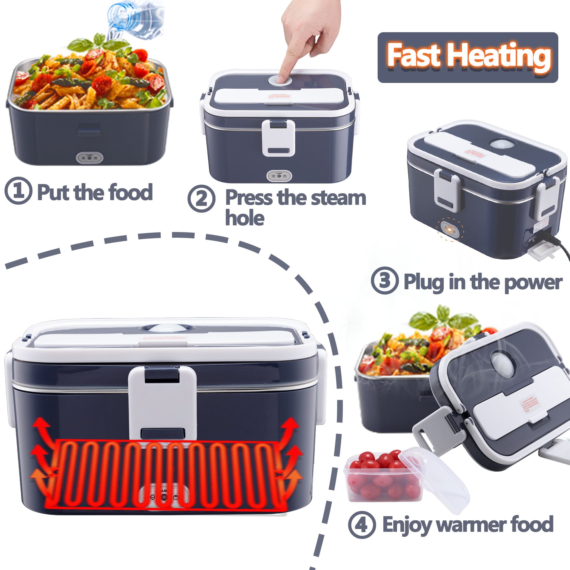 - ใ๐ด๐ฌ๐ช ๐๐ฎ๐๐ ๐๐ฒ๐ฎ๐๐ถ๐ป๐ดใOur heated lunch box for men has a heating power of 80W, which can heat up your food quickly and evenly in 15-40 minutes. Keeps your lunch at the right temperature and helps you enjoy hot meals at home, office, car, truck, outdoor work and more. Please make sure the electric lunch box for adults heating base plate and cord are dry when heating.